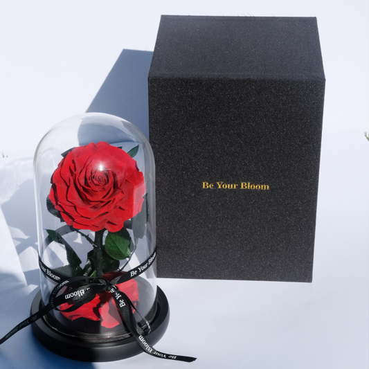 Everlasting Rose Glass Dome with LED Lights - Yellow