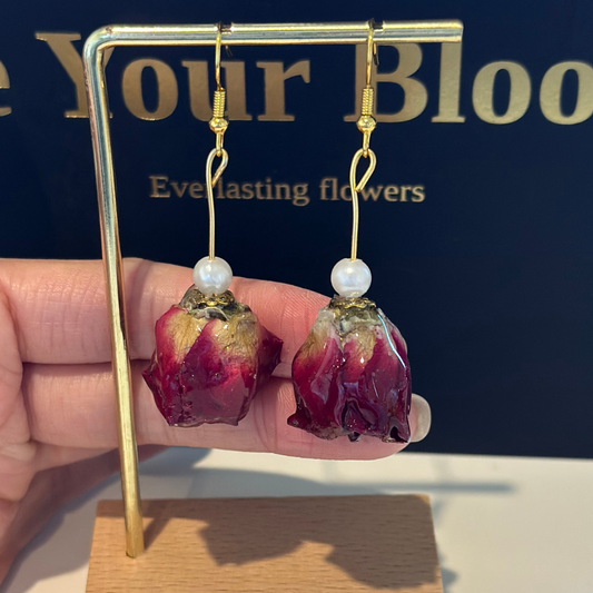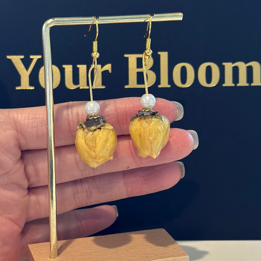 Handmade Resin Dried Flower Earrings - Yellow Rose